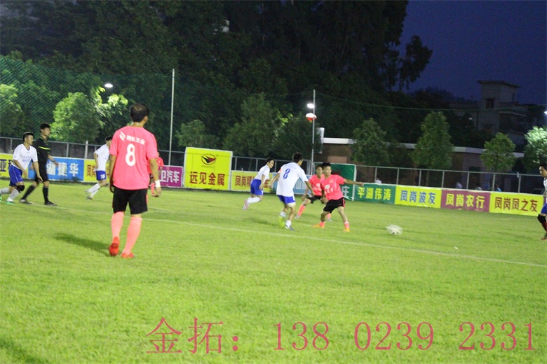 2015年8月25日東莞鳳崗第三屆“遠見杯”四強爭奪戰(zhàn),(金拓機械VS鳳崗泰冠華)在鳳崗油甘埔體育廣場舉行。經(jīng)過70分鐘的酣戰(zhàn),最終金拓機械以1:0取得比賽勝利,成功殺入四強。